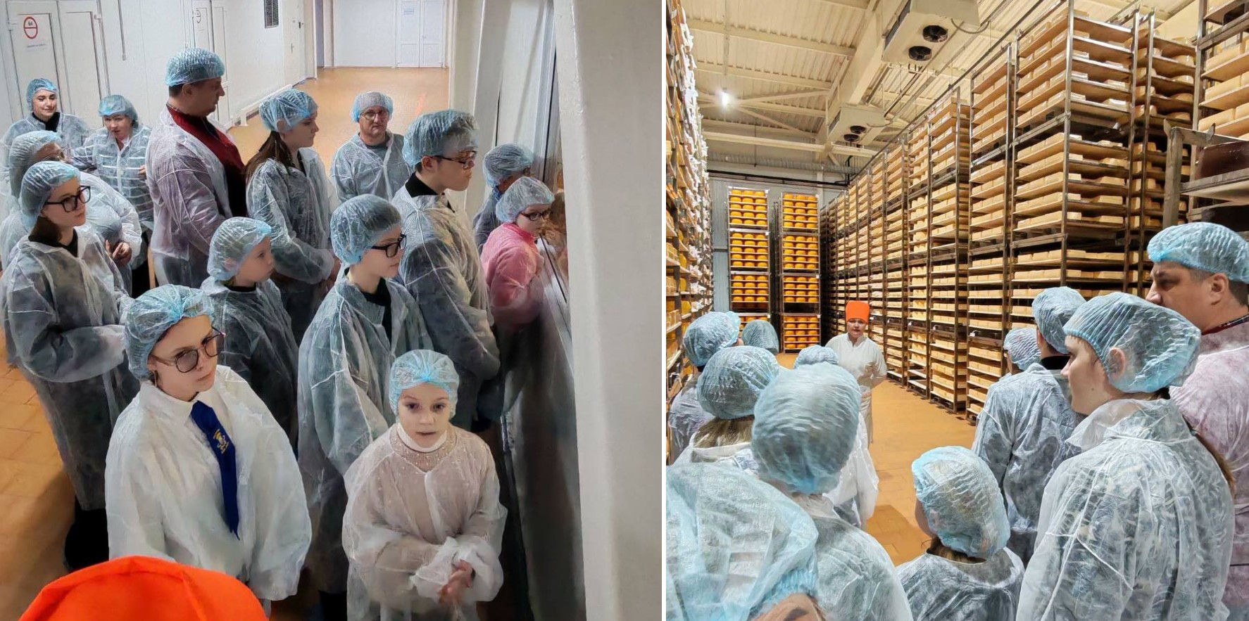 Для маленьких гостей, которым предоставлена была возможность посетить цех по производству сыров, были созданы все условия для безопасного знакомства с тонкостями процесса сыроварения.
