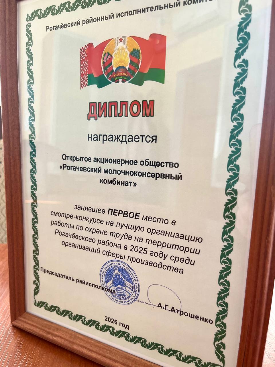По итогам ежегодного смотра-конкурса на лучшую организацию работы по охране труда среди организаций сферы производства, открытое акционерное общество «Рогачевский МКК» удостоено почетного первого места.